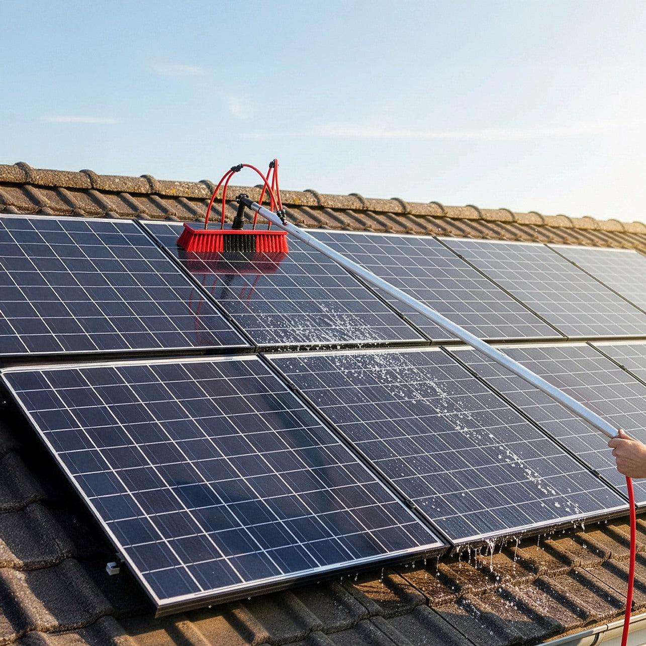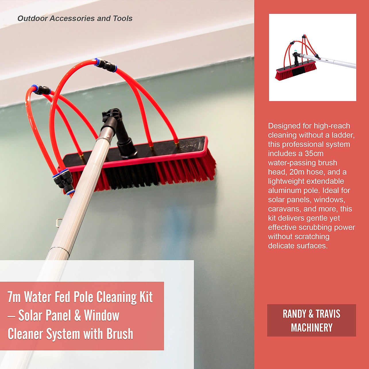 - Soft 35cm Brush Head – Water-fed bristles safely clean solar panels, windows, and vehicle exteriors without scratching or swirl marks