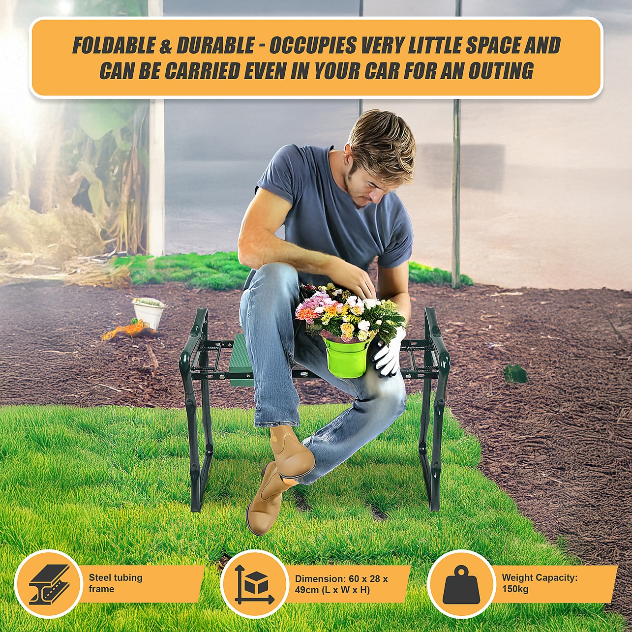 - Easy Standing up and kneeling down - no more need to put your palms on the grass to get up, simply hold the handles and lower or rise comfortably