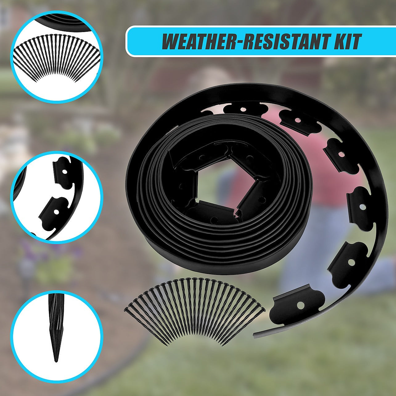 The paver is easy to use – just ensure the edge matches up with the perfect line envisioned for your garden, after removing any excess dirt from the area. Then just hammer as many of the anchoring stakes as required into the ground along the desired line, and the professional landscaping finish will be achieved! The material is flexible, so can easily be used for a clean, modern garden design, or even alongside weed fabric for protection from unwanted invaders.
