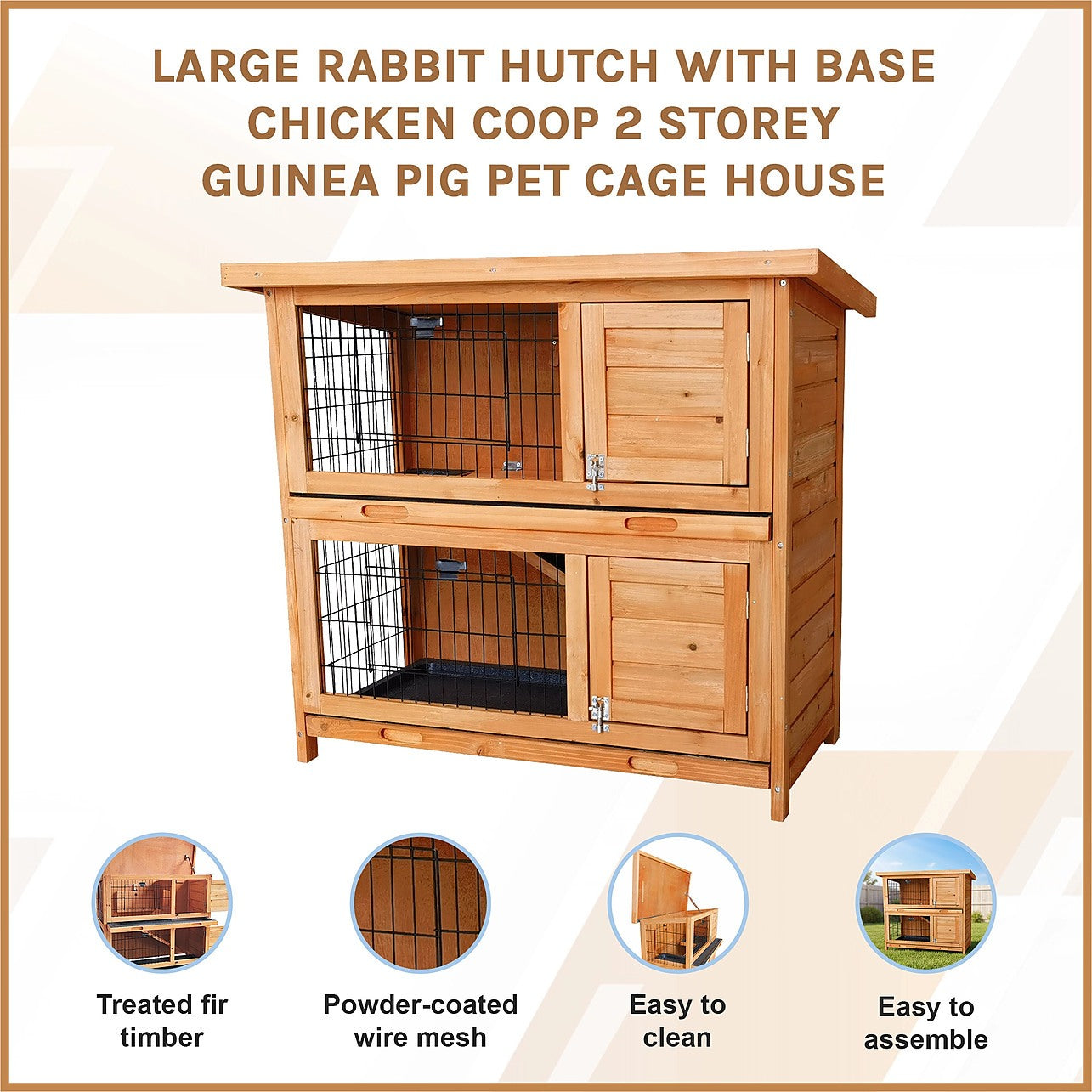 Large Rabbit Hutch with BASE Chicken Coop 2-Storey Guinea Pig Pet Cage House