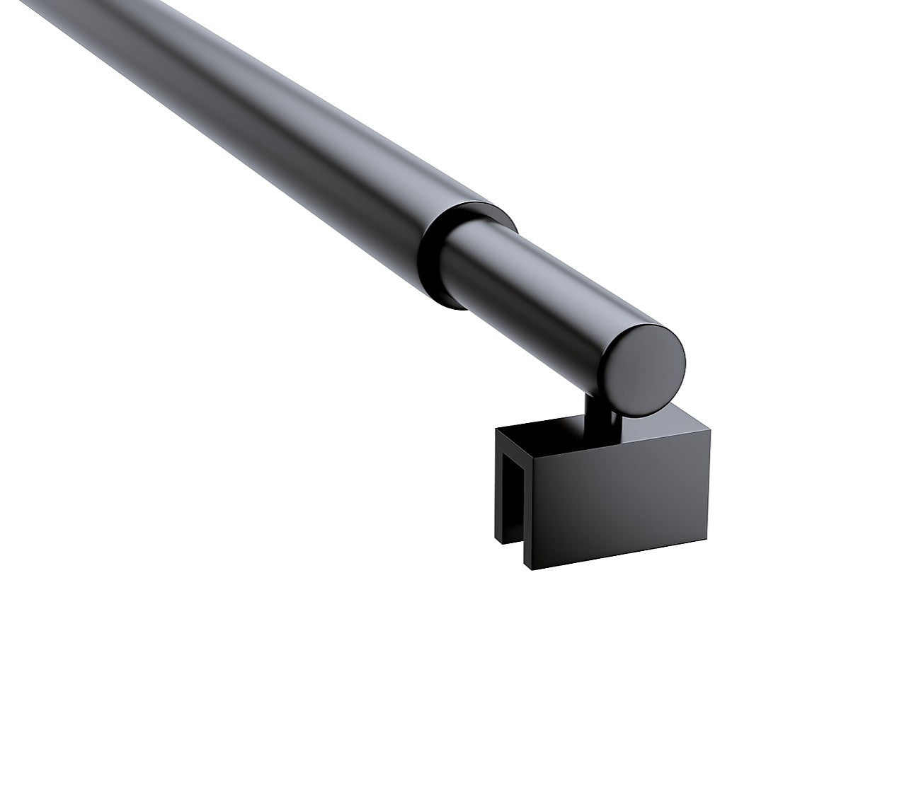 - Fixes horizontally from wall to top of glass panel