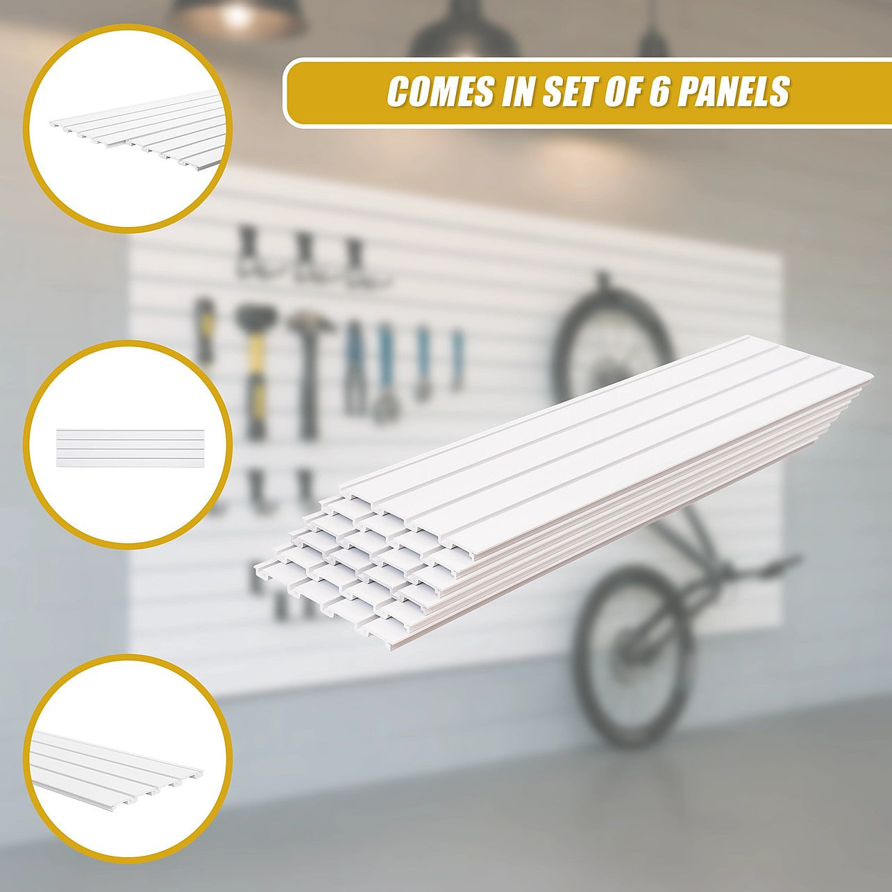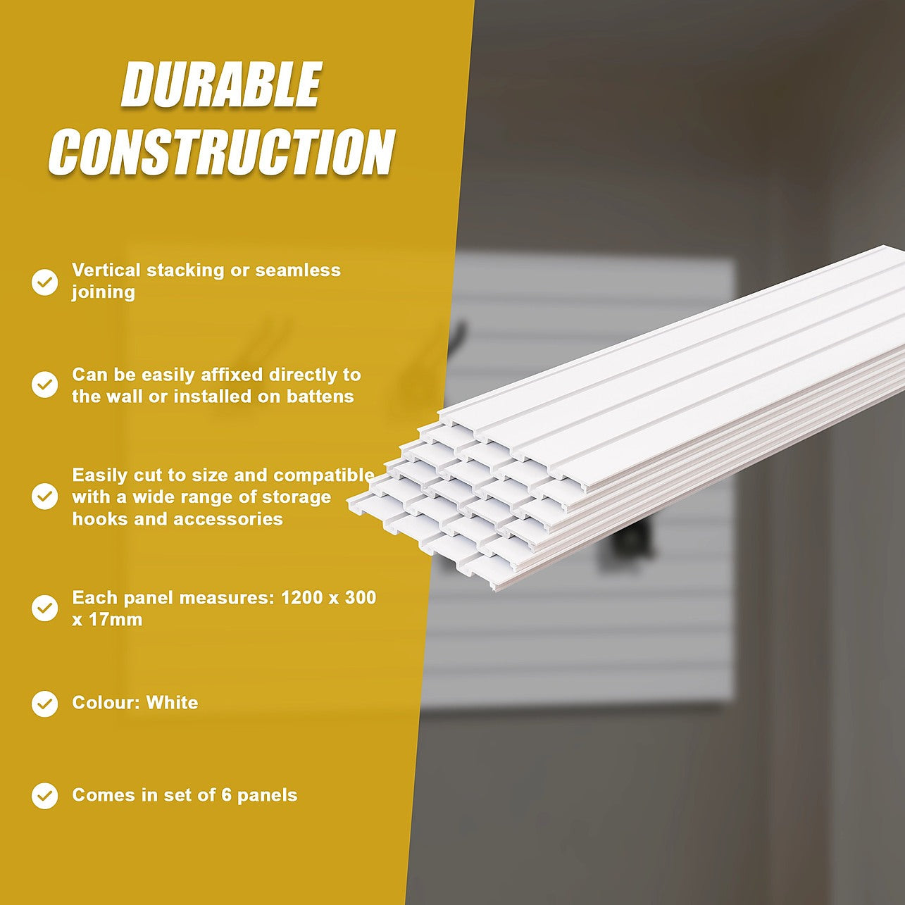 Transform your home garage or retail space with a 6-pack (2.16SQM) of PVC Slatwall Storage Panels from Randy & Travis, maximising your wall space with this exceptional wall storage system.