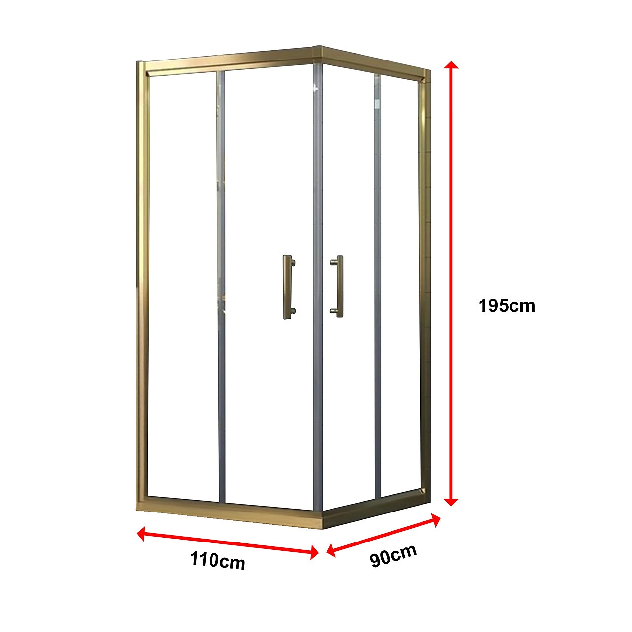 Adjustable 1100x900mm Sliding Door Glass Shower Screen in Gold with Shower Handle Style 2 - Gold