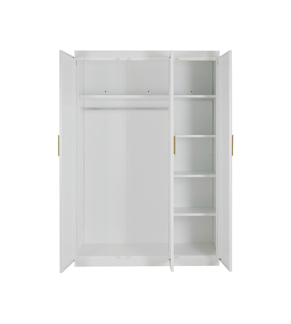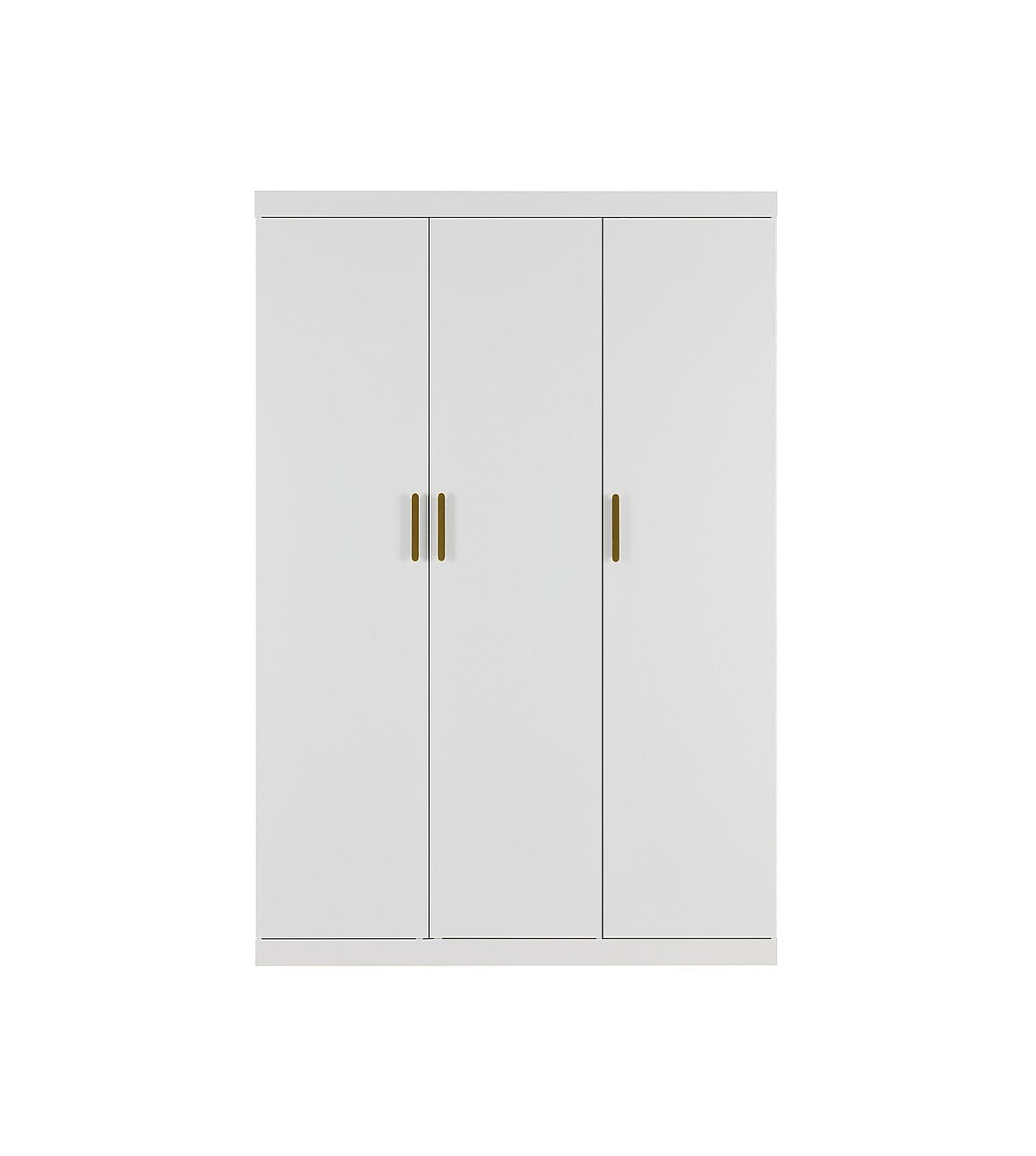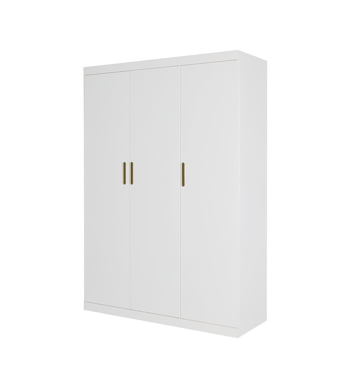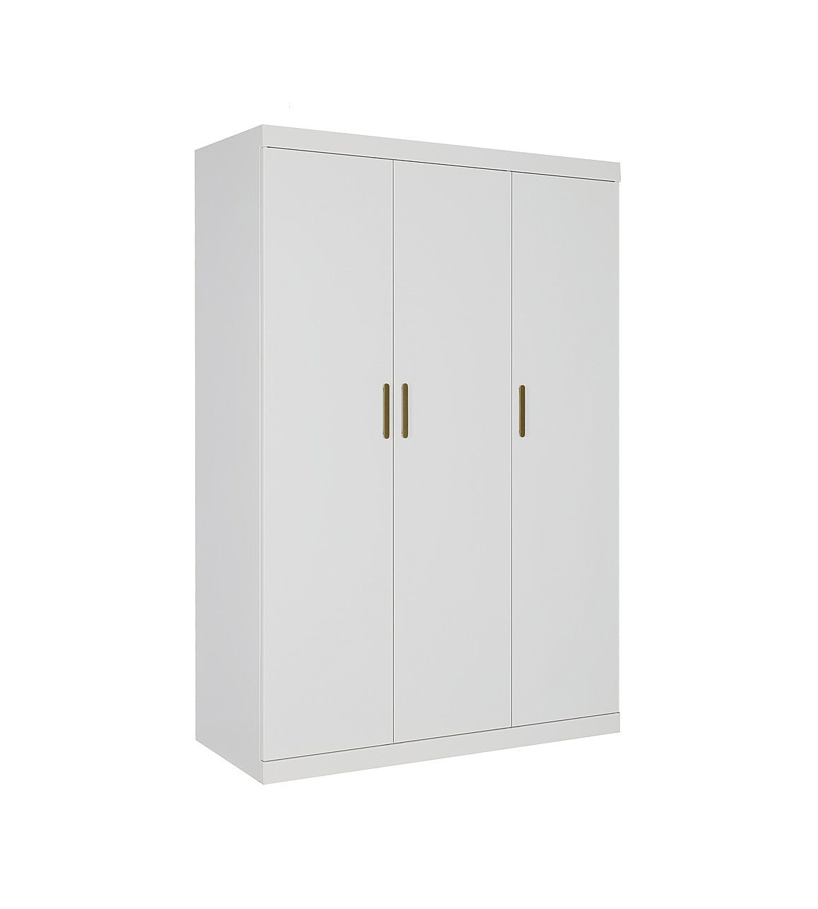 Add modern style and smart storage to your bedroom with this 3 Door Freestanding White Wardrobe. Crafted from steel plates with a sleek powder-coated surface, it's built for daily use. Stylish gold metal handles provide a premium accent to its clean, contemporary design.