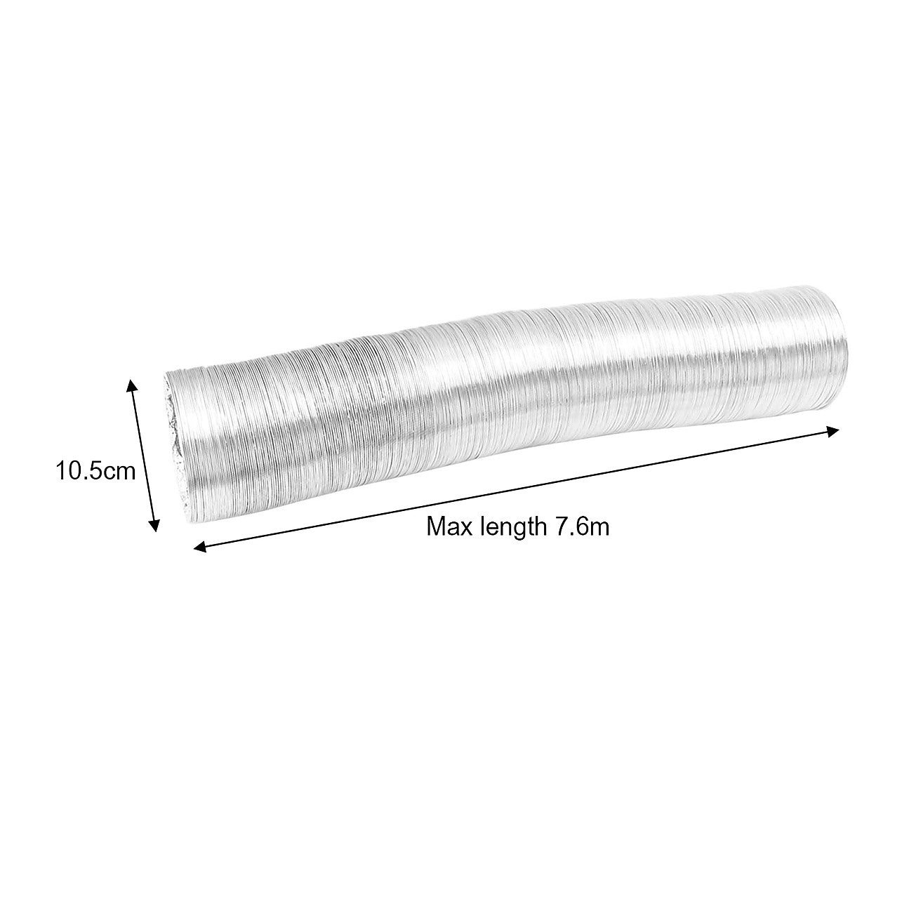10.5cm x 7.6m Flexible Aluminium Air Duct – Non-Insulated Vent Hose for Dryer & HVAC