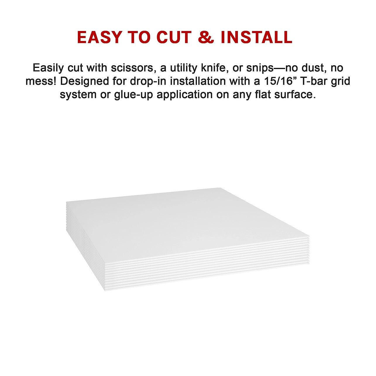 - Easy DIY - Cut with a utility knife or a table saw, fit into a standard 15/16" T grid ceiling system