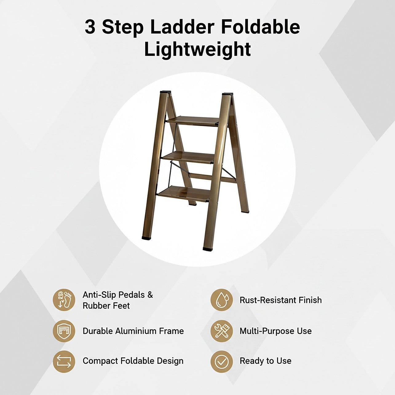 3 Step Foldable Ladder – Lightweight Anti-Slip Safety Stool for Home & Office