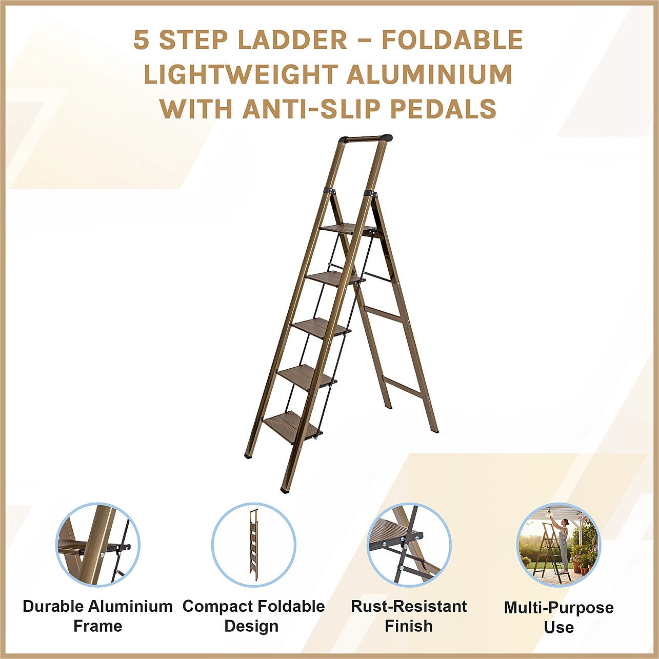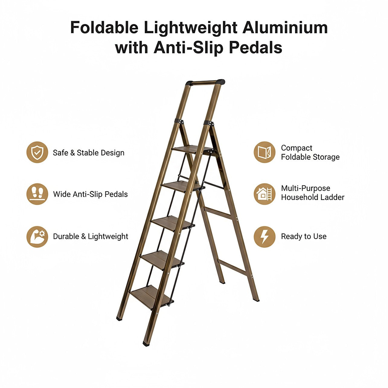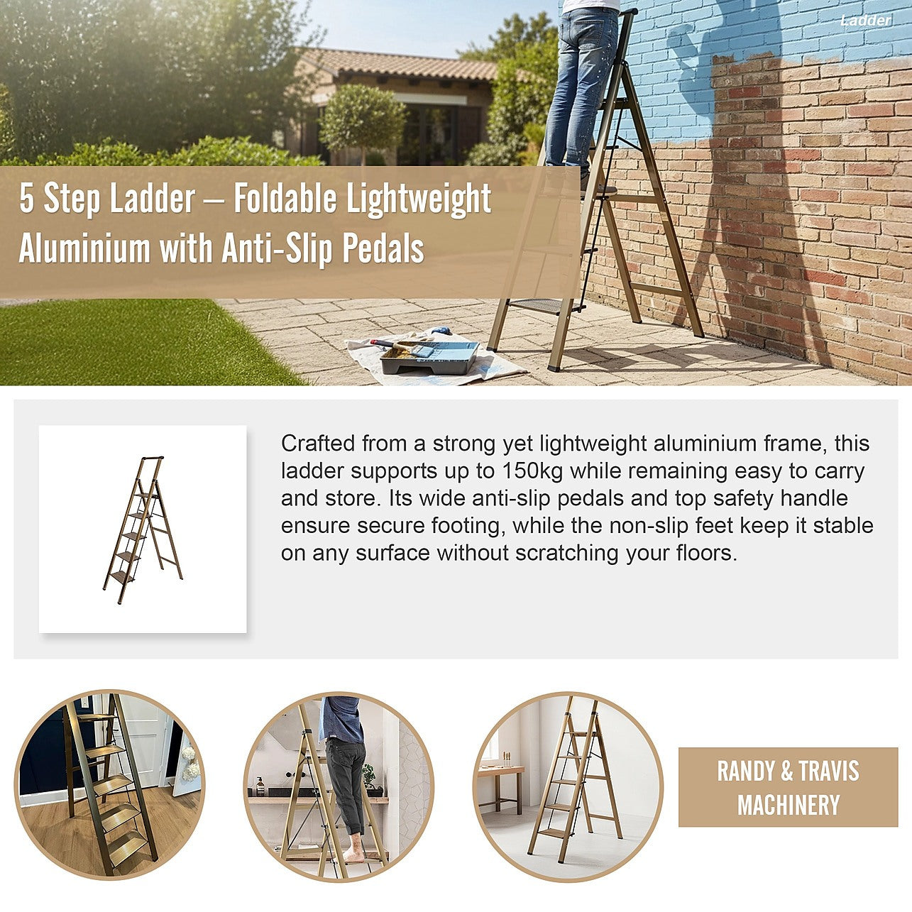 5 Step Aluminium Ladder – Foldable, Lightweight Design with Anti-Slip Pedals