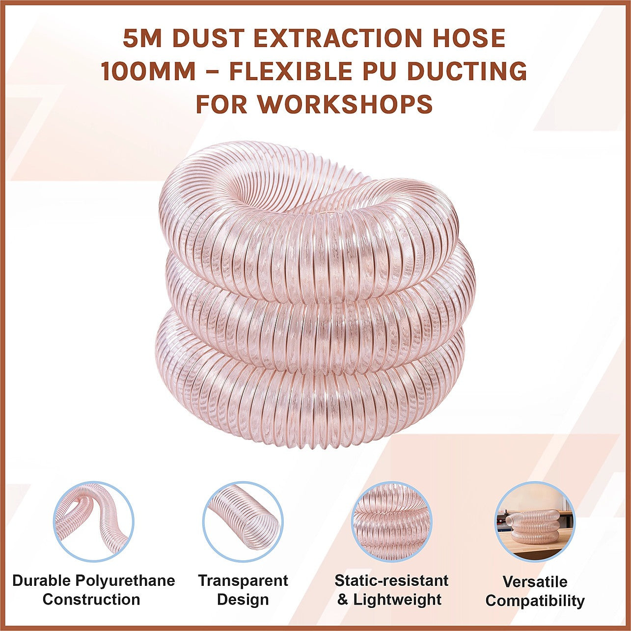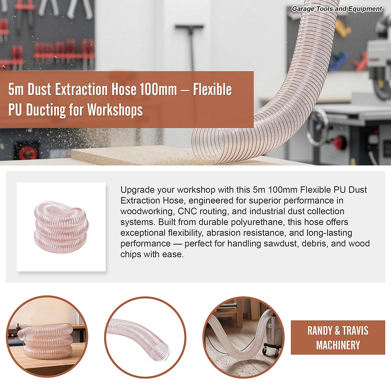 5m Dust Extraction Hose 100mm – Flexible PU Ducting for Workshop & Woodworking