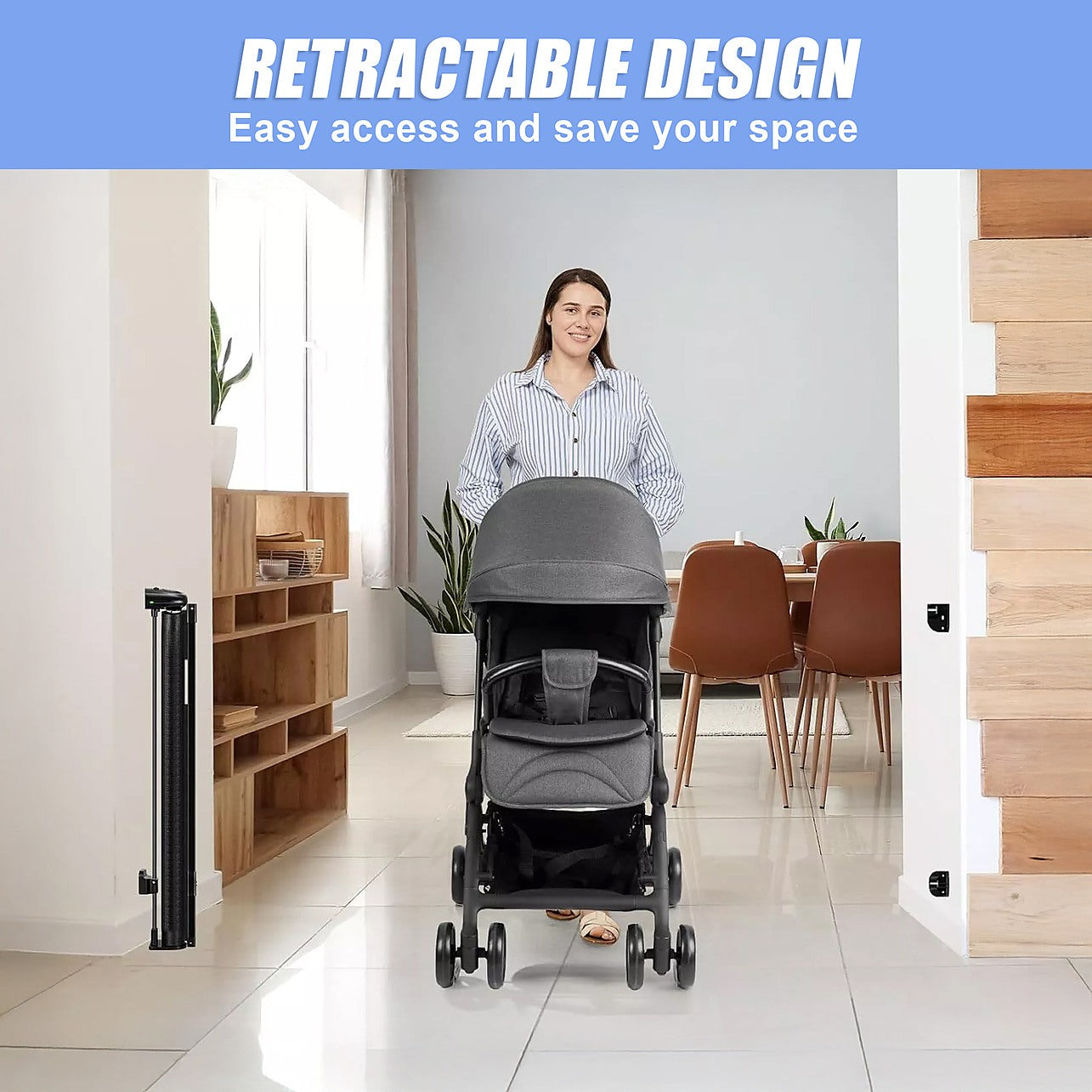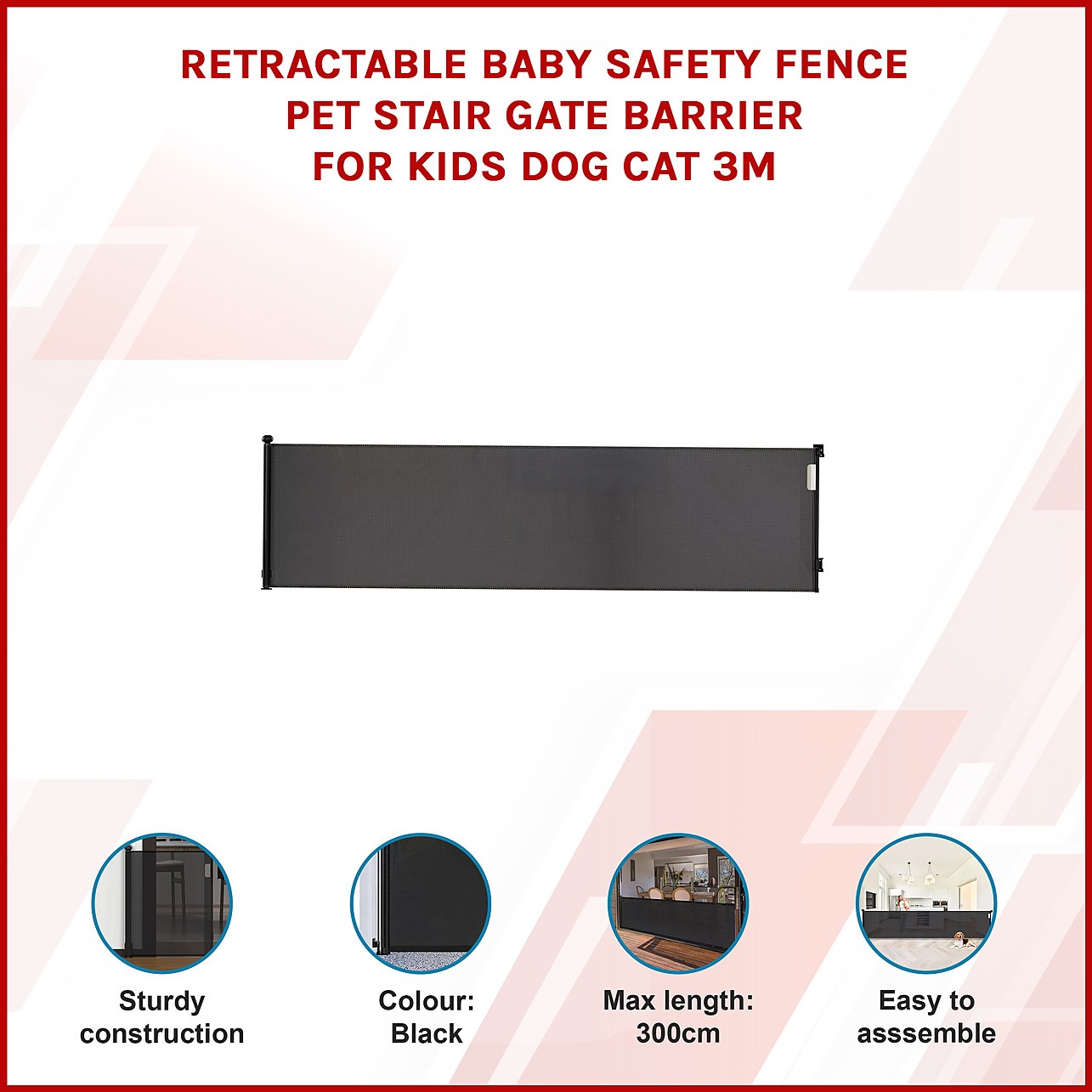3m Retractable Baby Safety Mesh Fence – Stair Gate Barrier for Kids and Pets