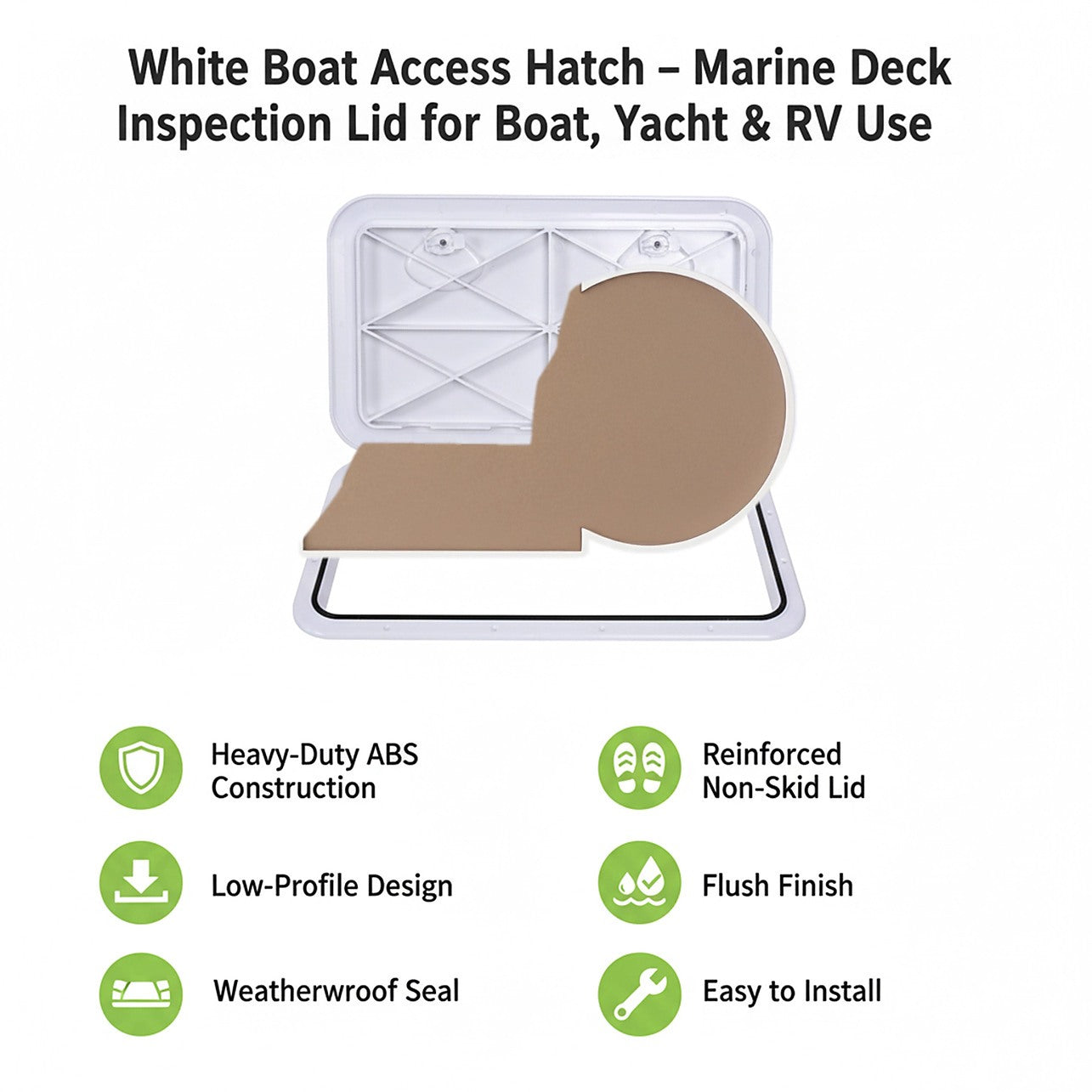 606 x 353mm White Boat Access Hatch – Marine Deck Inspection Lid for Boat, Yacht & RV