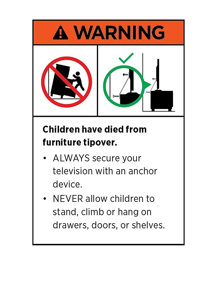 - NEVER allow children to stand, climb, or hang on drawers, doors, or shelves.
