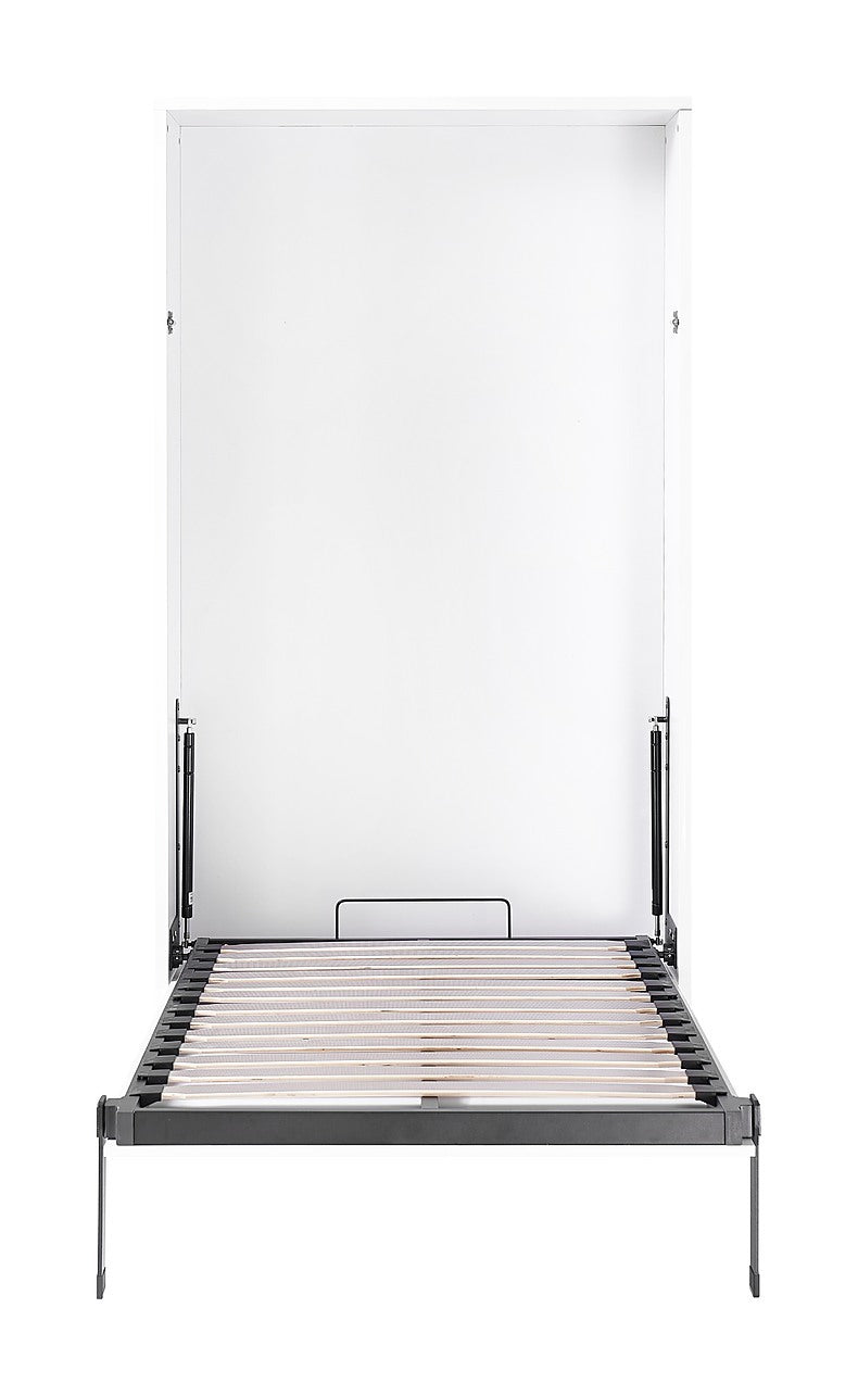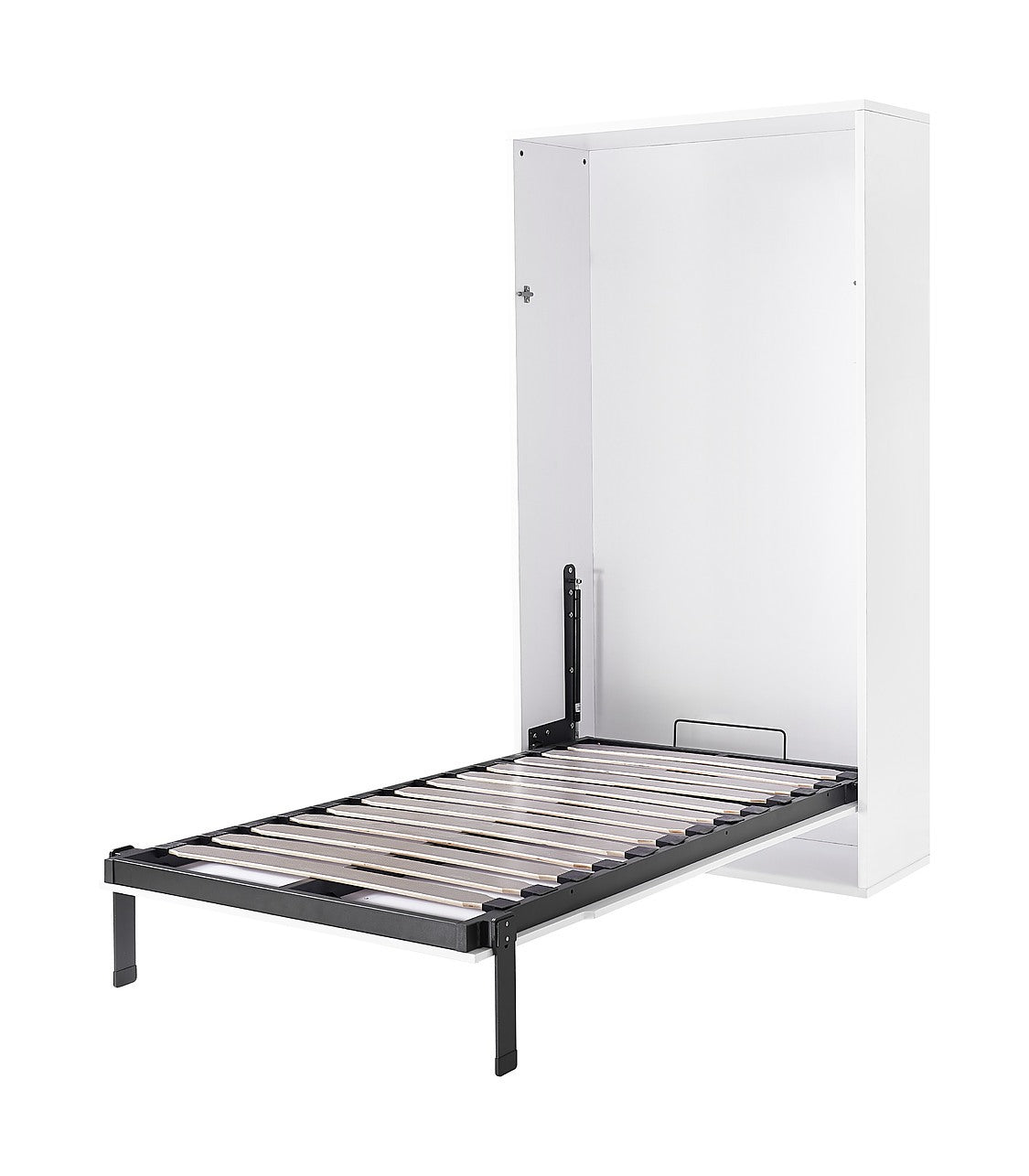 Single Wall Bed in White – Space Saving Murphy Bed Kit with Silver Door Handle