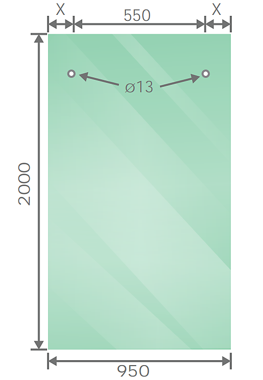 - 1 x Fixed panel: 950 x 2000mm
