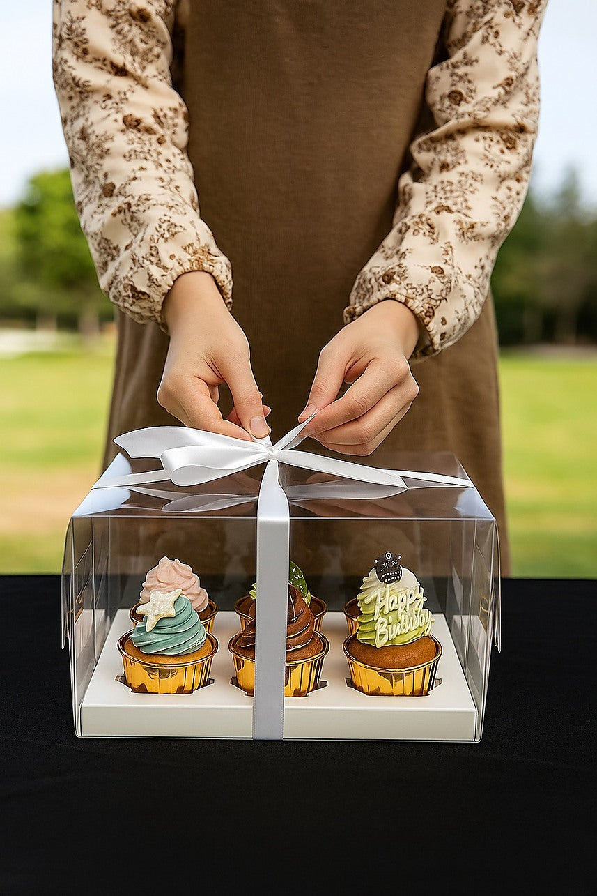 - Transparent display/carrying box to showcase desserts, cakes, muffins and other confectionery beautifully