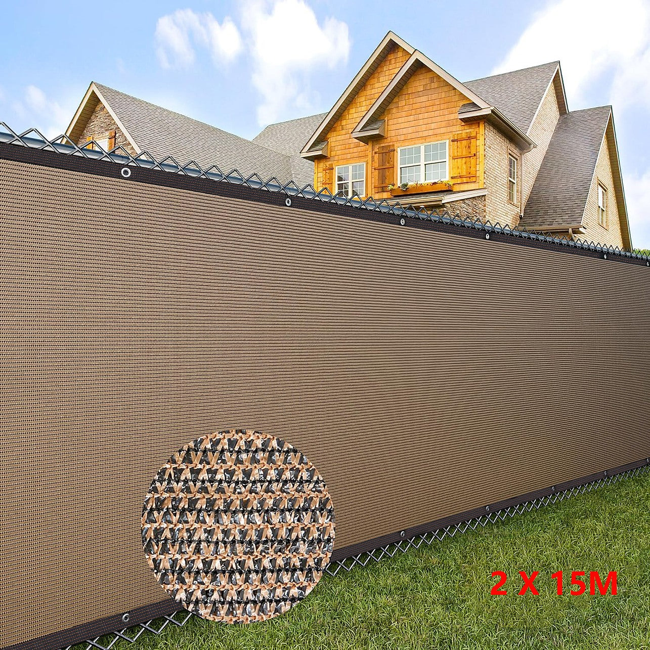 15m x 2m Fence Windscreen Privacy Shade Cover – Coffee Fabric Mesh for Garden, Patio & Outdoor Areas