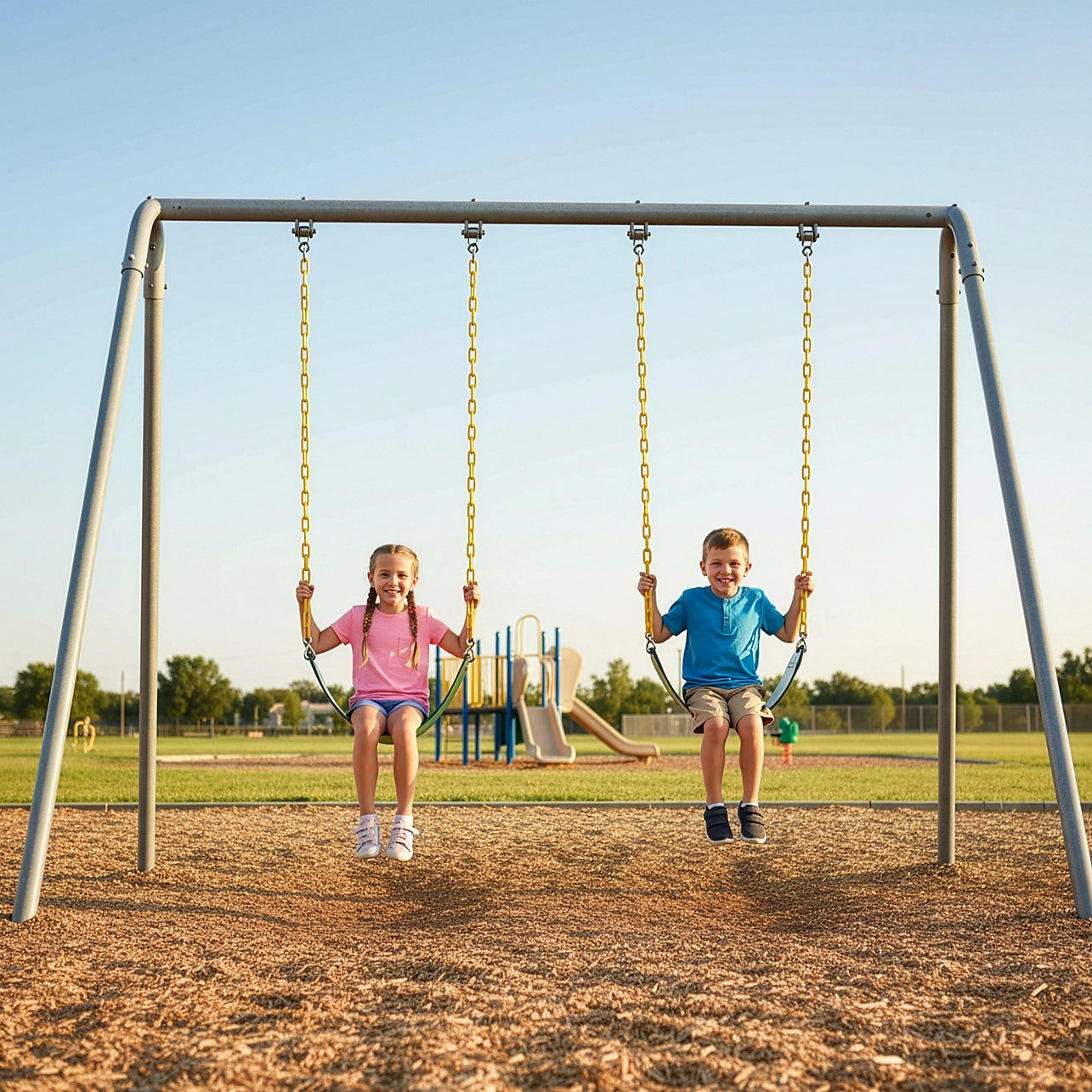 Designed with an eye-catching yellow plastisol coating to prevent finger pinches, these sturdy 2/0 zinc-plated chains should last for years. The copolymer plastic seat is both comfortable and safe. With their 300-pound weight limit, even the grownups can get in on the action. Enjoy hours of family fun with these rugged swings. Use them with low-friction swing hangers for maximum safety and enjoyment.