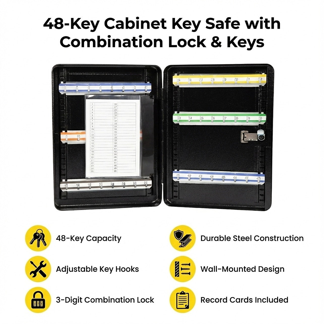 48-Key Cabinet Safe with Combination Lock – Wall Mounted Key Storage Box