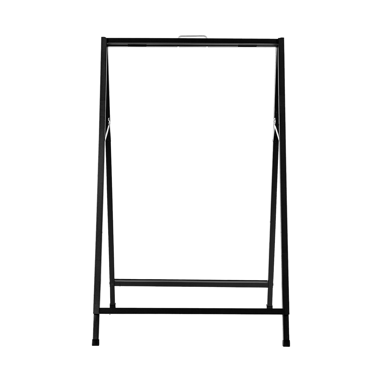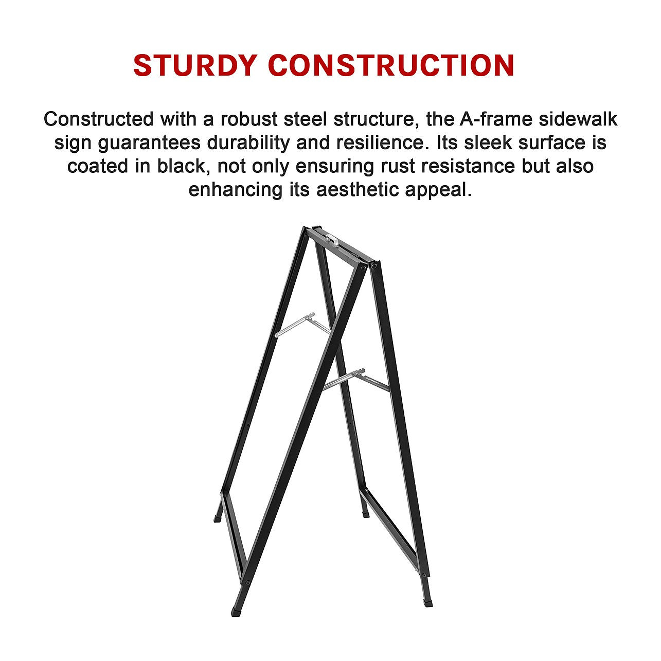 Constructed with a robust steel structure, the A-frame sidewalk sign guarantees durability. Its sleek surface is coated in black, not only ensuring rust resistance but also enhancing its aesthetic appeal. The A-frame configuration, coupled with anti-skid feet, ensures stability during use. Its lightweight material makes it portable and easy to carry.