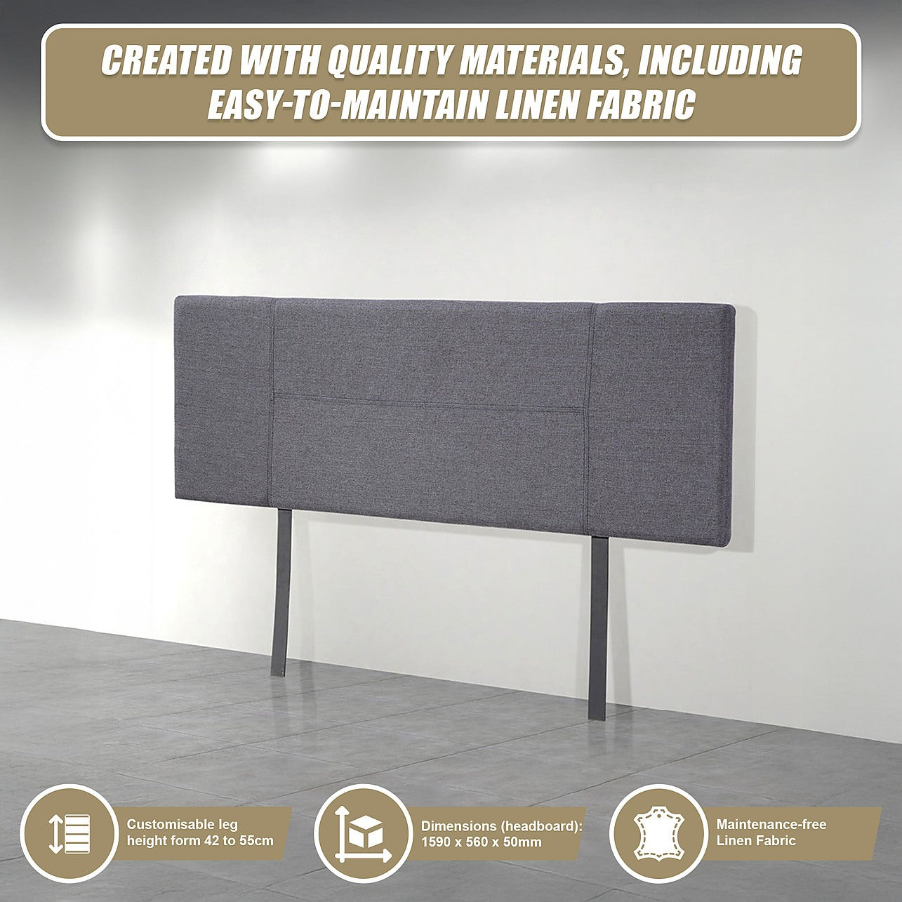 Queen Headboard with Legs – Upholstered Grey Linen Fabric, Minimalist Bedhead
