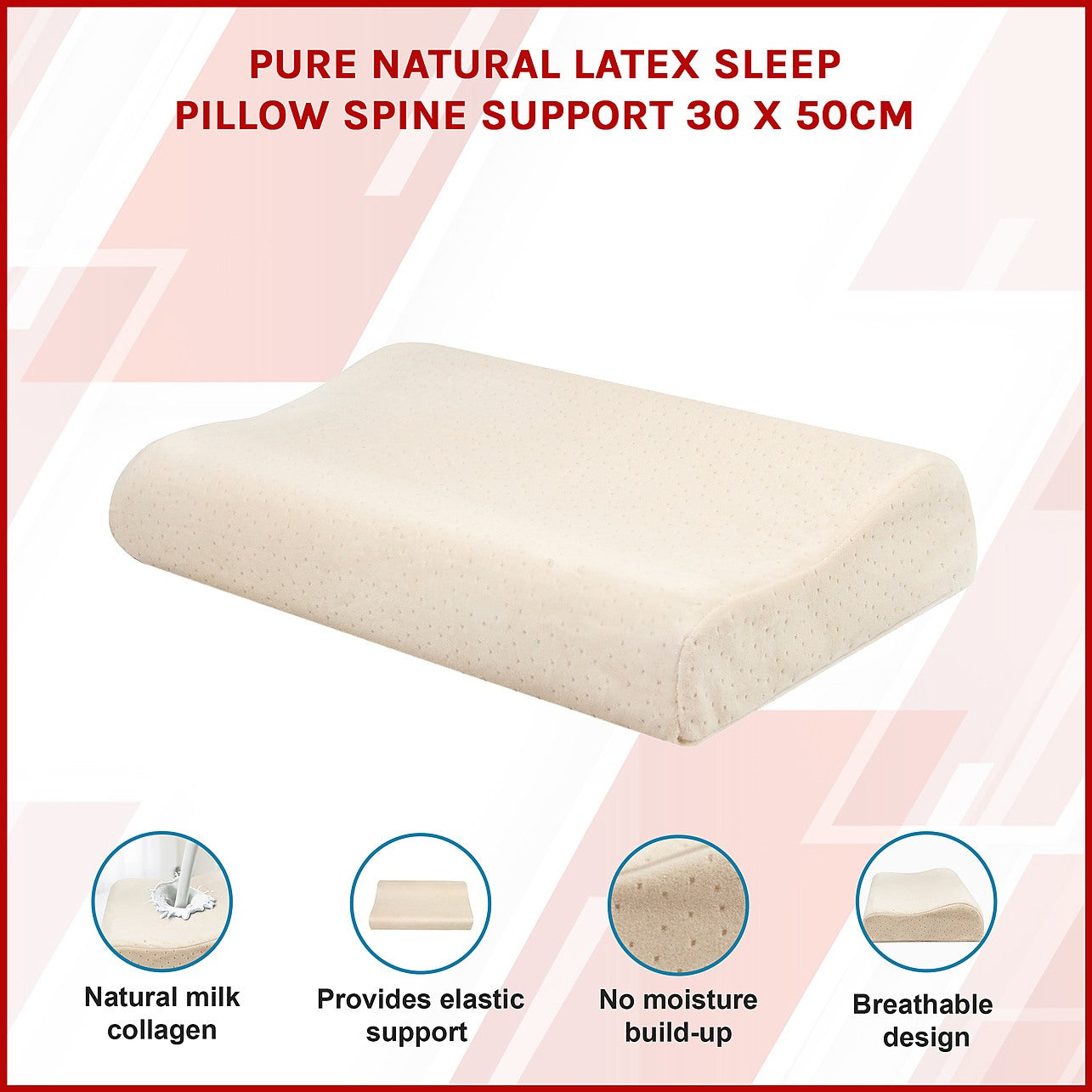 Pure Natural Latex Sleep Pillow Spine Support 30 x 50cm