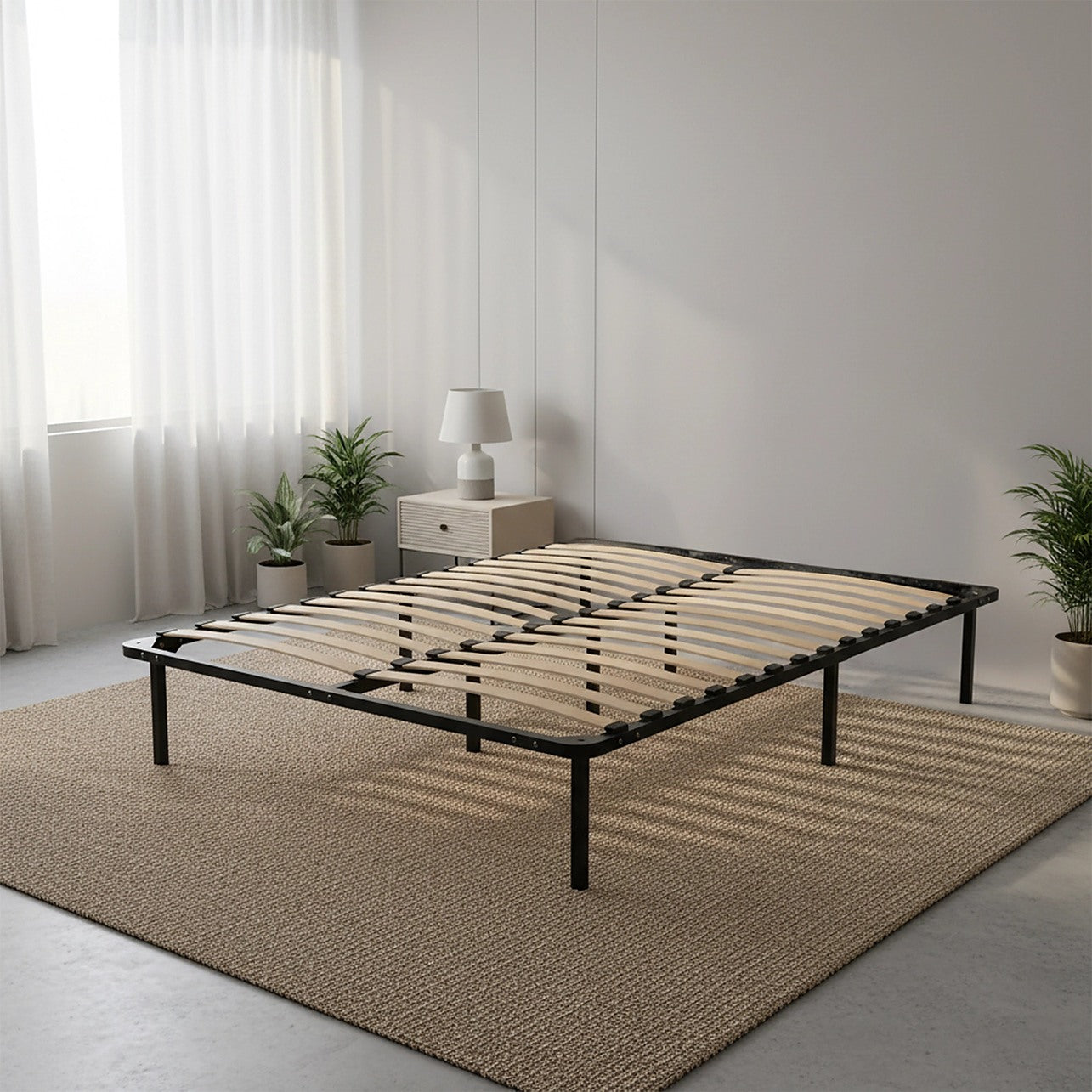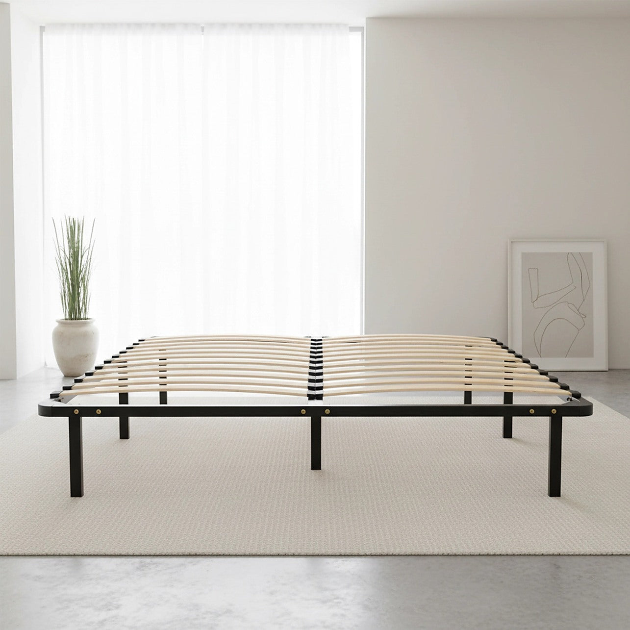 Queen Metal Bed Base with Slats – Heavy-Duty Steel Frame